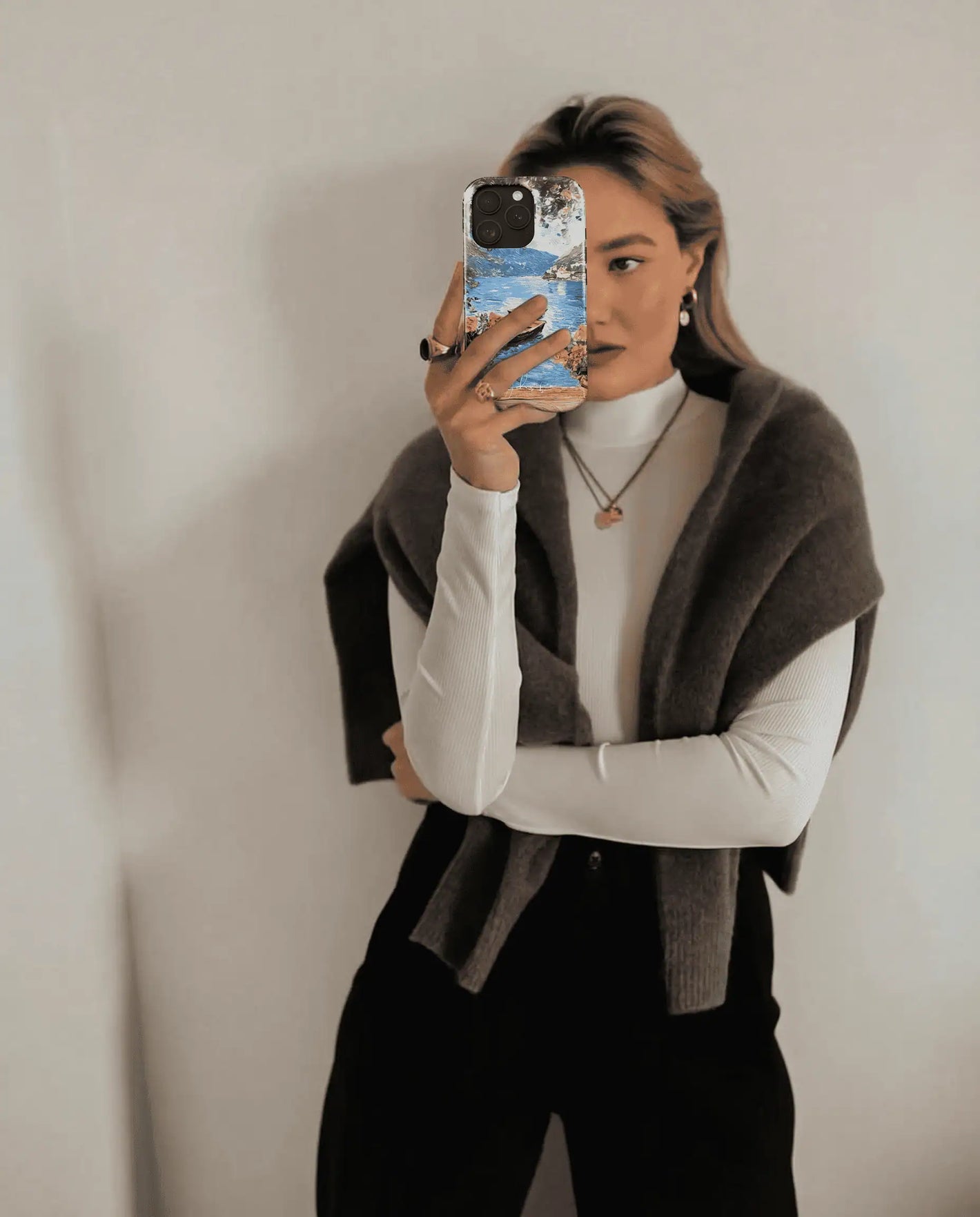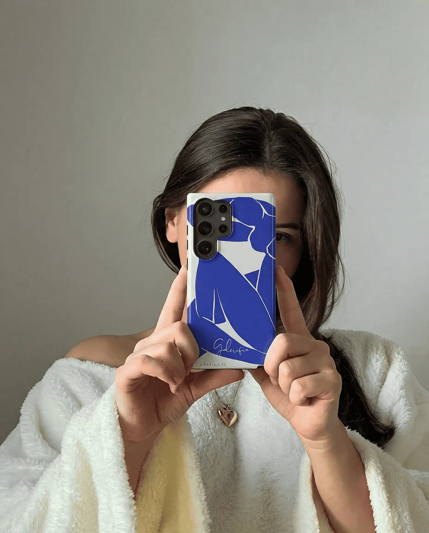 The blue on this case is so strong and clean. ‘Sitting Blue Nude’ looks super modern but still elegant, and it makes my phone stand out in a good way. The case snaps on tight and doesn’t feel bulky in my hand.
