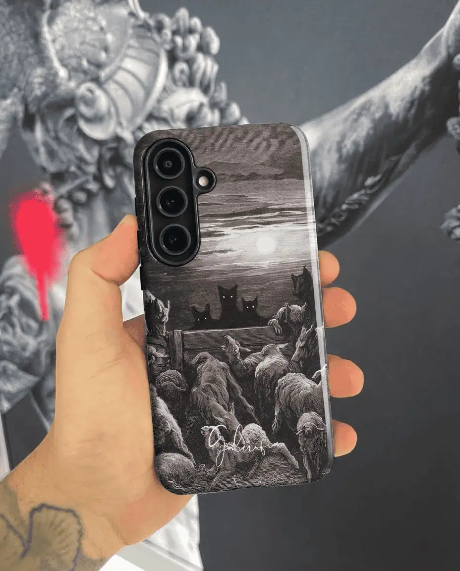 The detail on this ‘Paradise Lost’ case is wild. You can actually see all the little lines and shapes, even though it’s black and white. It makes my Note 20 Ultra look like a collectible, and the case feels really solid in the corners.